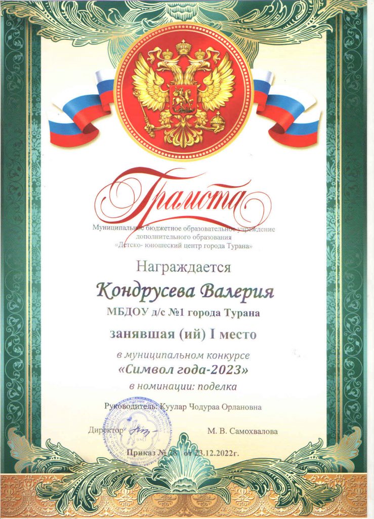 Без рубрики 28.12.2022 / Воспитанники нашего детского сада вместе со своими родителями с удовольствием поучаствовали в муниципальном конкурсе «Символ года — 2023». Всего приняли участие в этом конкурсе 7 детей. Грамотами награждены 2 ребенка.