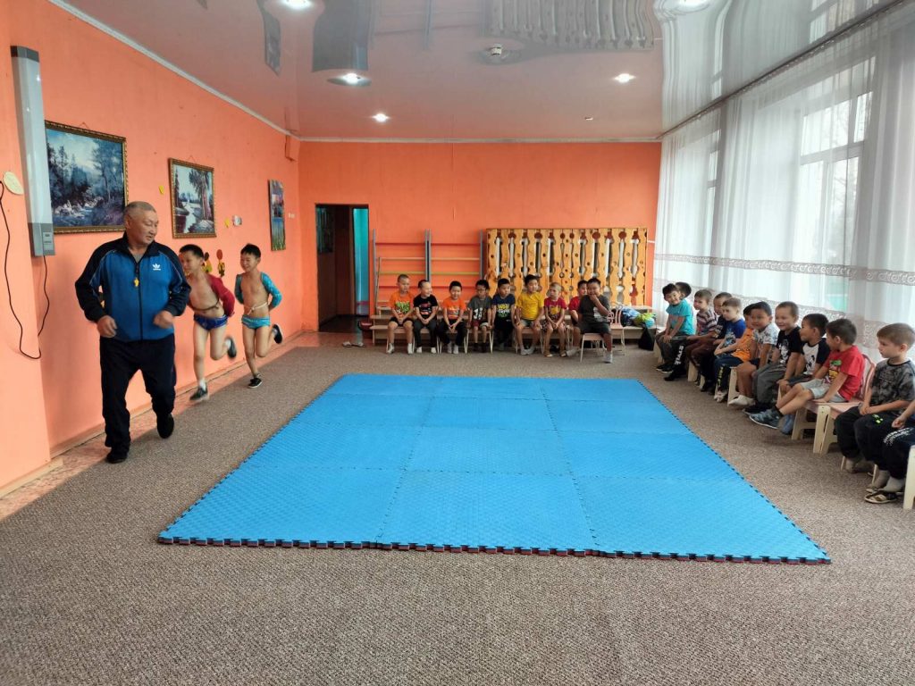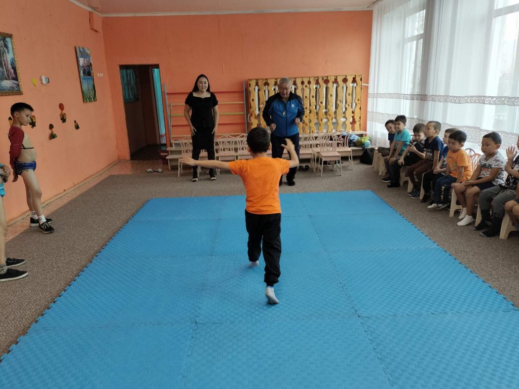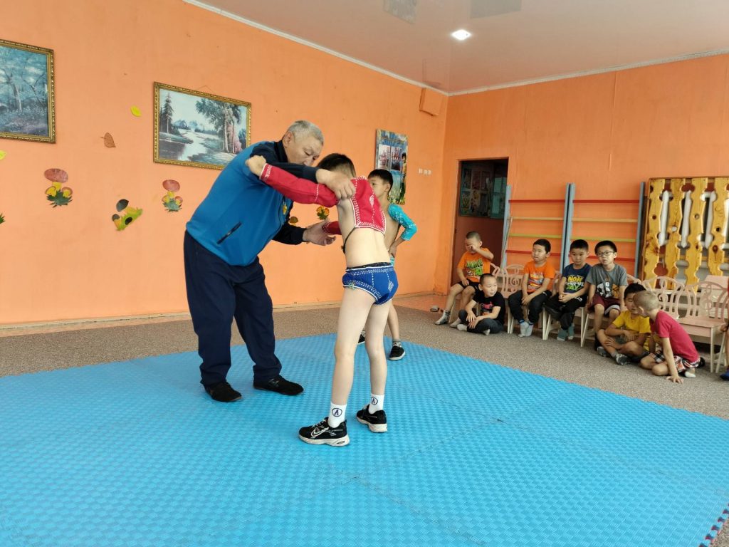 Во исполнение Постановления Главы Республики Тыва от 25 мая 2022 года № 310 и в целях развития физической культуры и спорта среди обучающихся дошкольных образовательных учреждений, 26 октября 2023 года в МБДОУ №1 г. Турана было проведено мероприятие для мальчиков 4-7 лет, на котором приглашенный тренер-преподаватель по борьбе Хуреш Канзан Вадим Имажапович побеседовал с ребятами о национальной борьбе Хуреш, а также показал приемы этой борьбы, правильное исполнение ритуального танца «Девиг».