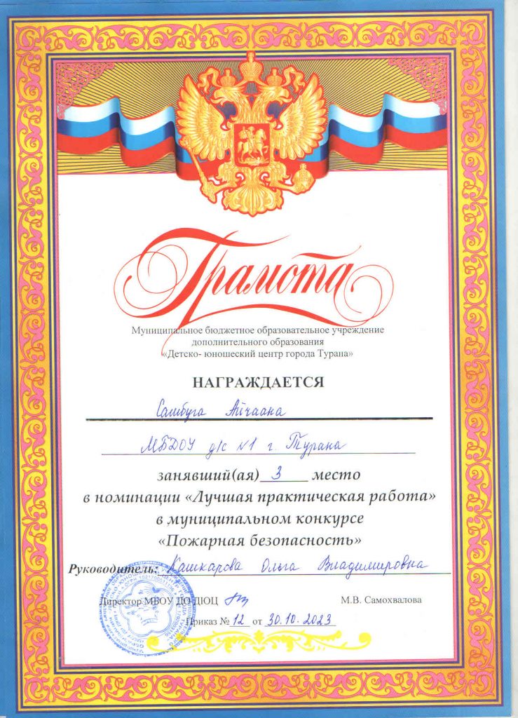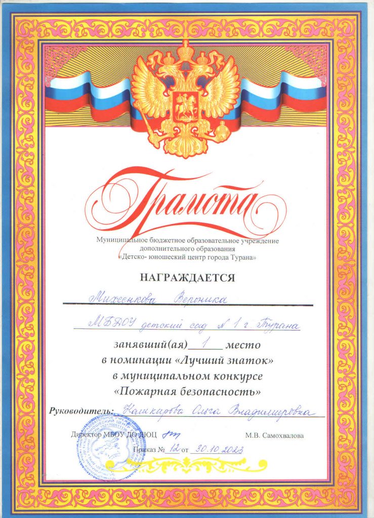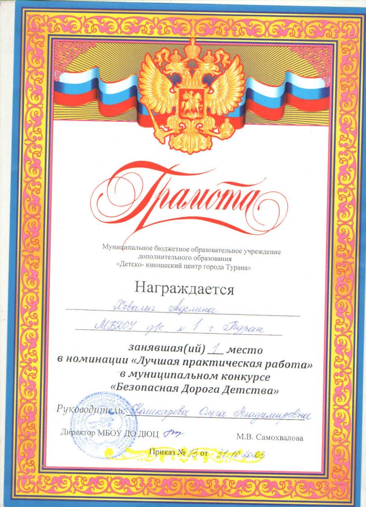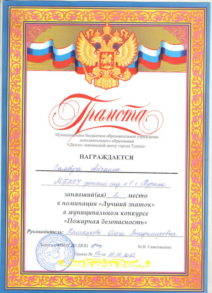 Уже стало хорошей традицией, что в первые дни осенних каникул МБОУ ДО Туранский ДЮЦ проводит муниципальные конкурсы «Пожарная безопасность» и «Безопасная дорога детства». Воспитанники нашего детского сада также ежегодно принимают участие в этих конкурсах и занимают призовые места. Не стал исключением и этот год. Четверо наших воспитанников старшего дошкольного возраста приняли участие в данных конкурсах и были награждены грамотами. Молодцы, ребята!