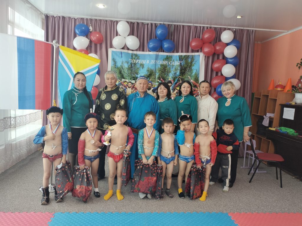 В соответствии с письмом Министерства образования Республики Тыва от 17.10.2023 года № 9964 2 ноября коллектив МБДОУ д/с №1 г. Турана провели внутрисадовские соревнования по национальной борьбе «Хуреш» среди воспитанников старшего дошкольного возраста. На это мероприятие были приглашены воспитатели, инструкторы по физической культуре ДОУ Пий — Хемского кожууна, а также для помощи в проведении борьбы были приглашены Председатель совета отцов и тренер спортивной школы Пий-Хемского кожууна Дендип Александр Чатович,тренер-преподаватель по борьбе Хуреш Канзан Вадим Имажапович и родитель воспитанника Аяс Кодур-оолович Кужугет. Соревнования прошли с соблюдением всех правил.
