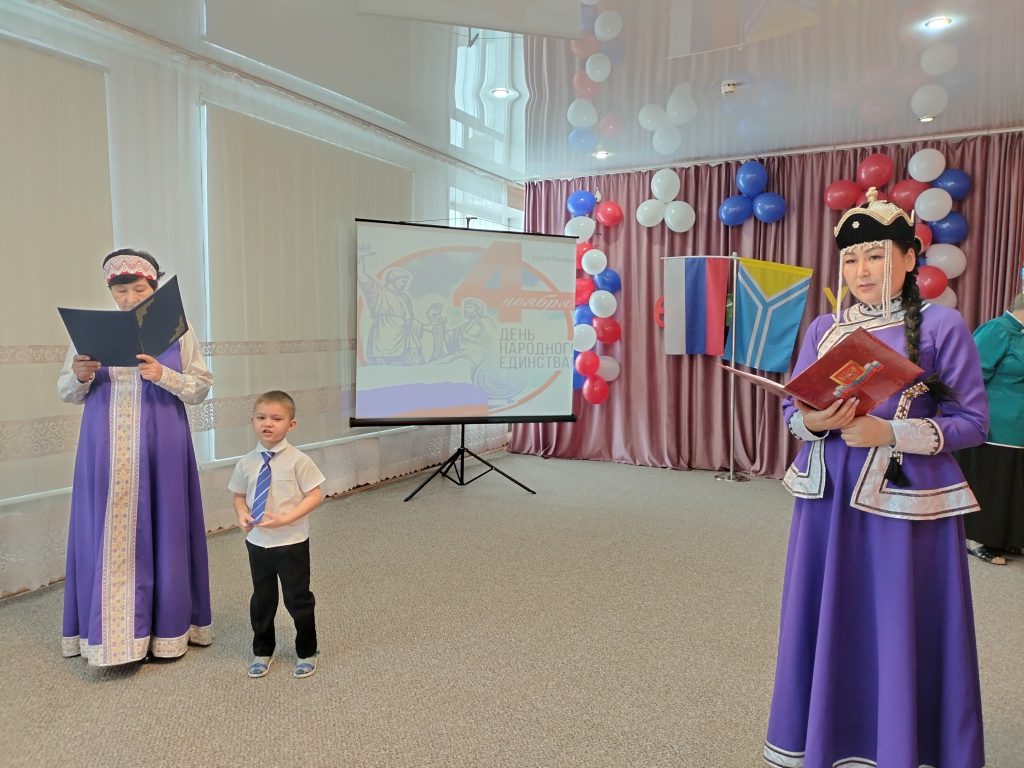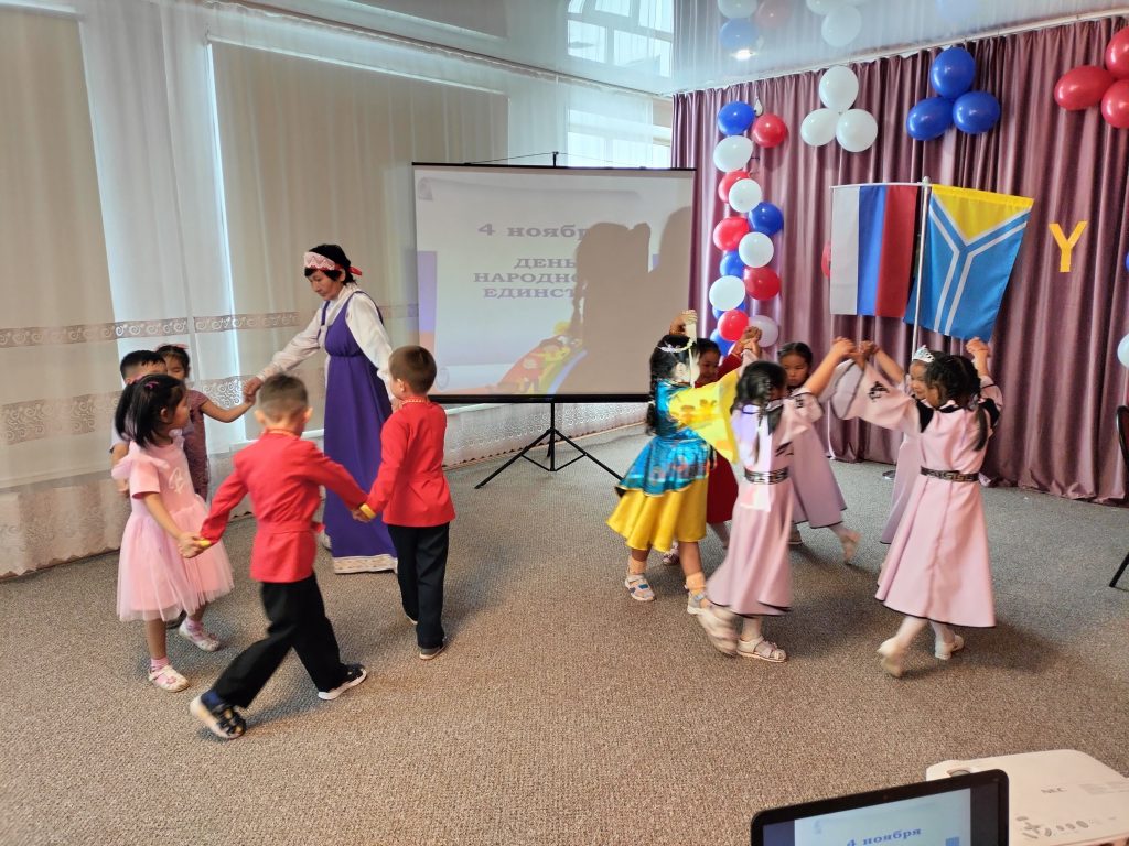 4 ноября в России отмечается праздник — День народного единства. Праздник является символом уважения и гордости за великое прошлое нашего государства, дает нам возможность осознать себя единым народом с общей исторической судьбой и общим будущим. С целью формирования у детей представлений об истории России, ее героическом прошлом, а также с целью расширения представлений детей о народах, населяющих Россию, 3 ноября 2023 года в МБДОУ д/с №1 г. Турана был проведен утренник, посвященный этой дате.