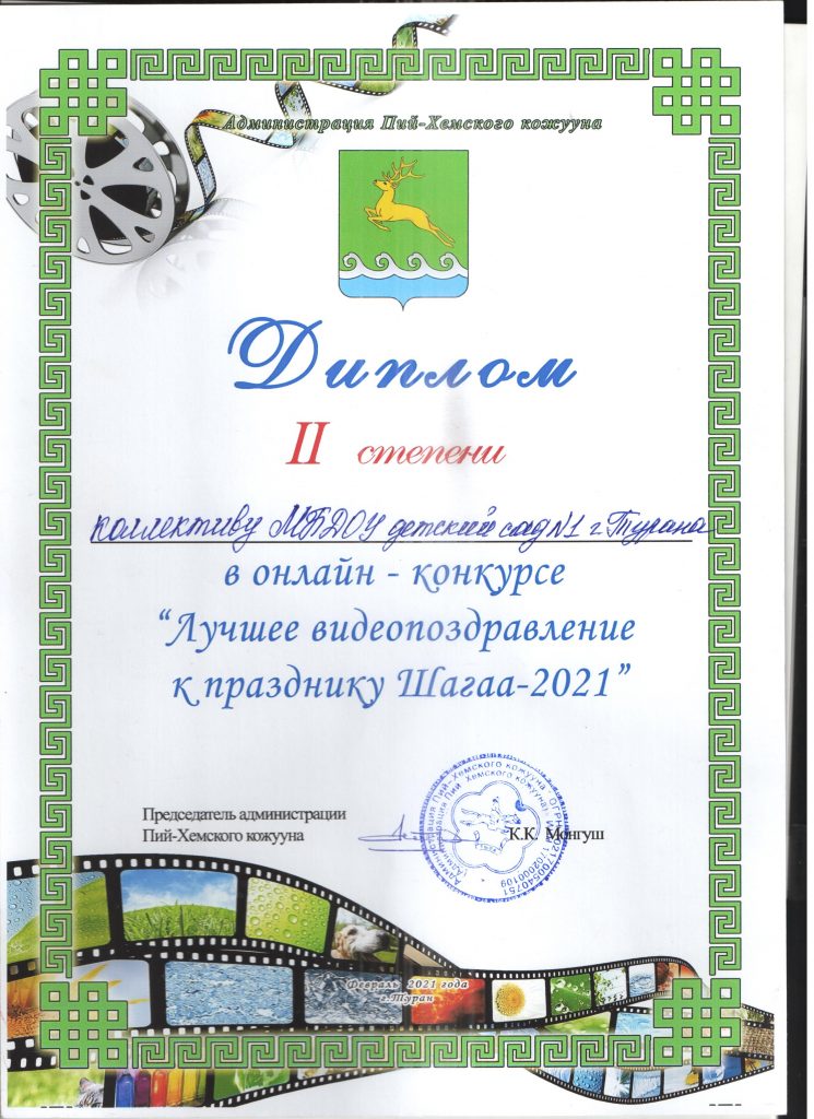 Без рубрики 15.02.2021 / Коллектив нашего детского сада принял участие в онлайн — конкурсе «Лучшее видеопоздравление к празднику Шагаа — 2021» и по результатам голосования мы заняли 2 место, были награждены дипломом 2 степени и денежным призом. МОЛОДЦЫ!