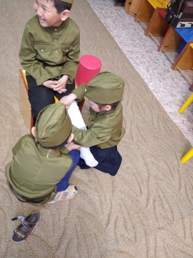 13 мая 2021 года был проведен утренник, посвященный празднованию Дня Победы. С детьми побеседовали на военную тему, спели песню «Катюша», станцевали трогательный танец, провели увлекательную эстафету.Чтобы прочувствовать атмосферу тех далеких лет, для этого утренника были сшиты детские костюмы.